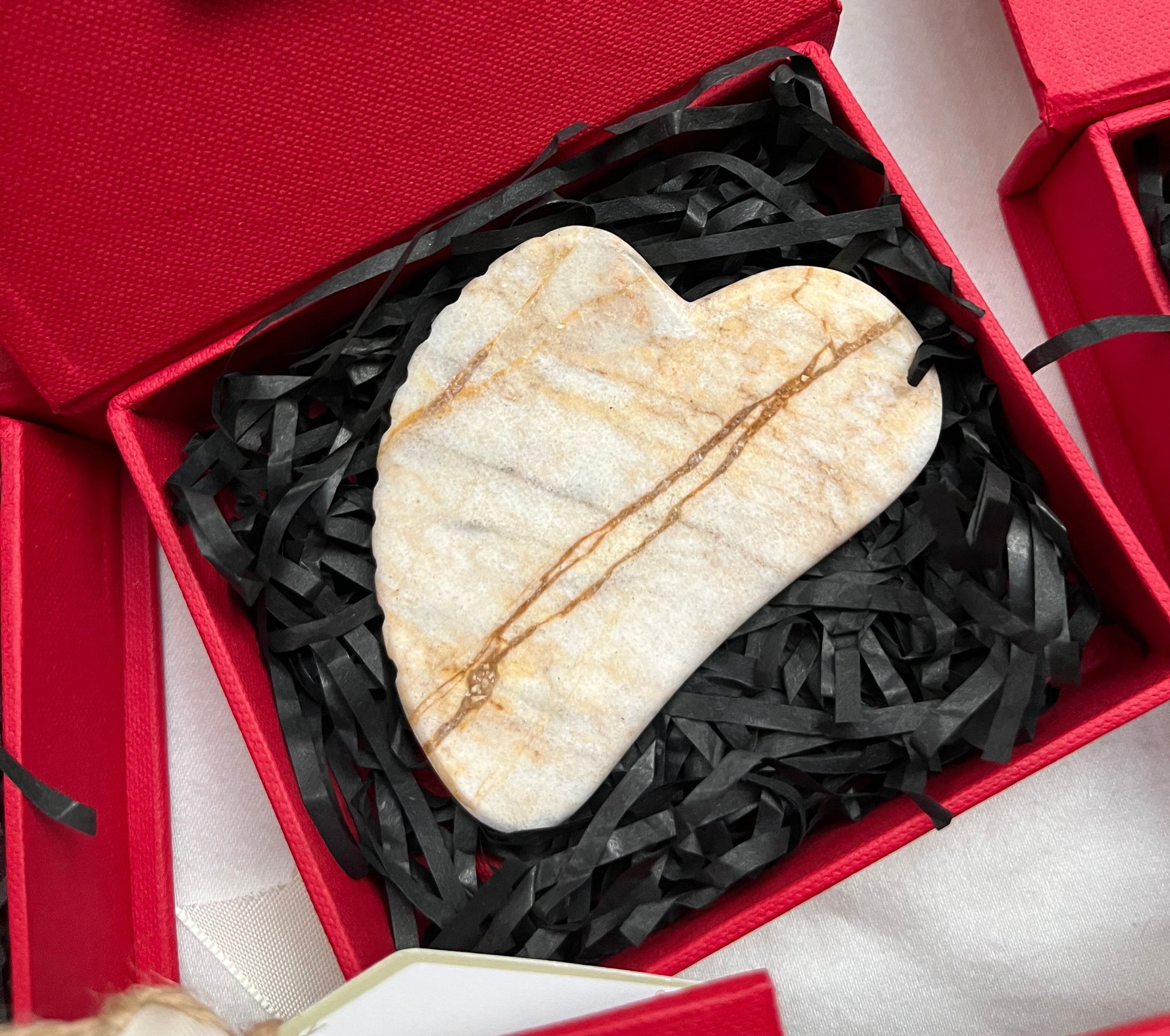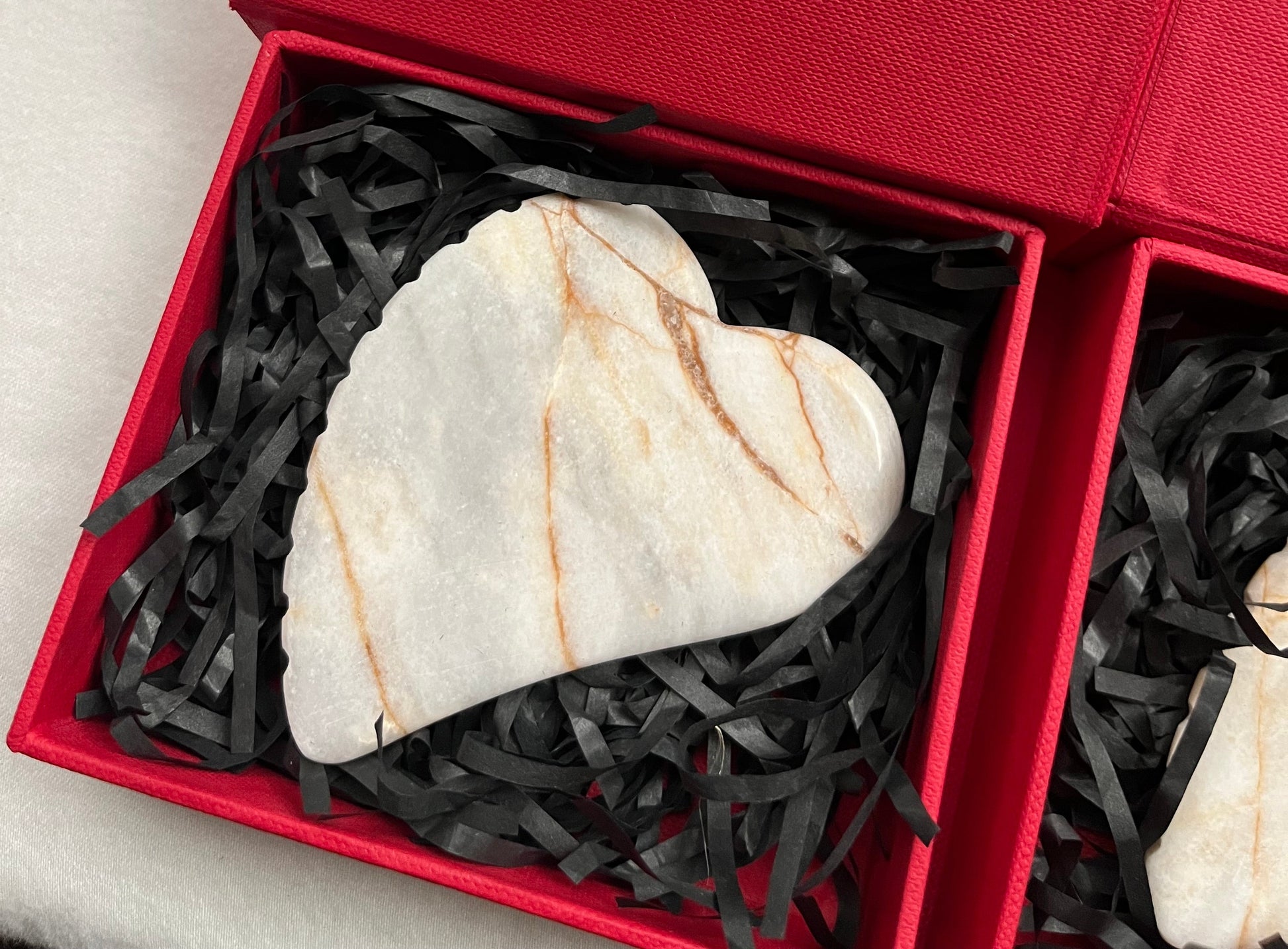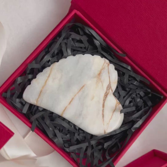 The Vilma Marble Gua Sha is our refined version of the classic Corazon now sculpted with enhanced edges for better grip and more intentional pressure. Handcrafted from natural marble, each piece carries unique veining and a cool, luxurious feel that only real stone can offer.